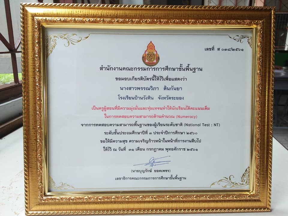 22 กันยายน 2561 รับเกียรติบัตรครูผู้ถ่ายทอดประสบการณ์การจัดกิจกรรมการเรียนการสอนคณิตศาสตร์