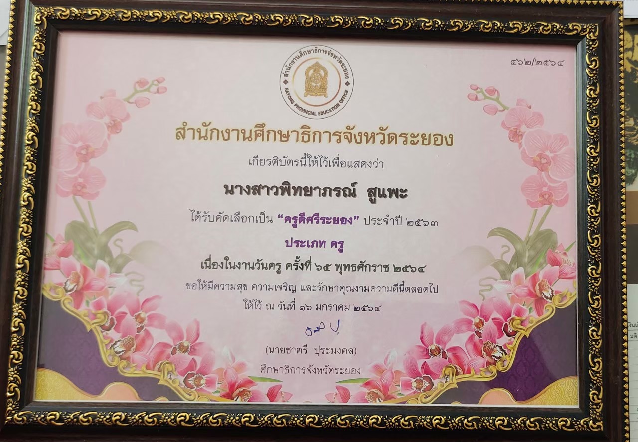 ชื่อผลงาน : รางวัลครูดีศรีระยอง 2563